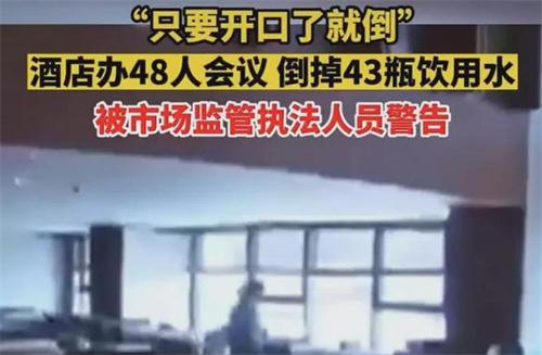 自古以來勤儉節約一直是中華民族的美德,最近南京的一家酒店因為倒掉了,43瓶沒有喝完的水被市場監督管理局進行了警告。在南京市市場監督管理局所公布的執法錄像,記錄顯示。在南京酒店當時所召開的48人會議上,因為在會議上給每位參會者都準備了一瓶礦泉水。在會議結束之后,多數人的礦泉水由于沒有喝完,工作人員在打掃會場時沒有打算將沒有喝完的礦泉水扔掉,只是想將瓶子留下來當廢品賣掉。當時的這一幕被南京市場監督管理局的局長李明華看到,于是上前詢問工作人員稱,這是否開口和的服務員稱開口的已經全部倒掉了。