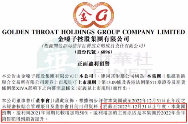 近日金嗓子剛剛發布了2022年的年度預告披露,根據金嗓子的公告顯示公司截止到2022年的12月31日,預期的溢利和2021年相比增加了50%,此次利潤的大規模增加,主要是因為公司在2022年的全年銷售額出現了大幅度的增長,據相關的數據統計,金嗓子公司近幾年來的業績增長一直處于停滯狀態,這的業績增長也預示著公司的業務正在開始回升,受到公司業績回升的影響,在3月10日金嗓子的股票大漲期漲幅達到了12%,截止到3月10日收盤,金嗓子股票漲幅為6.36%,報收于每股2.34港元,總市值達到了17.3億港元。