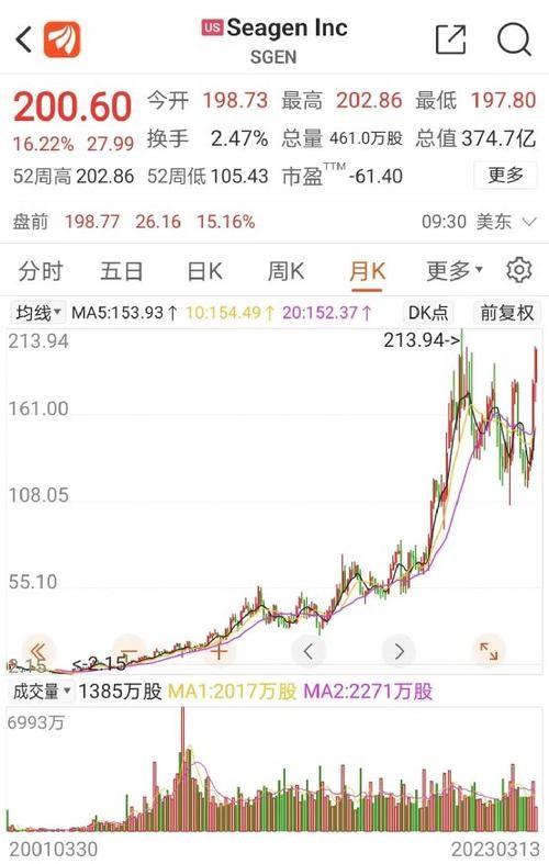 輝瑞于北京時間3月13日晚向外宣布,以229美元每股的價格,總計430億美元,折合成人民幣大約是2944億元將生物醫藥公司Seagen收購。Seagen在3月10日的收盤,價格是172.61美元。如果按照這個價格進行計算的話,這一次的并購案溢價將近33%。2001年Seagen在美國的納斯達克上市,其股票最高的漲幅至今已經達到了98.5倍。