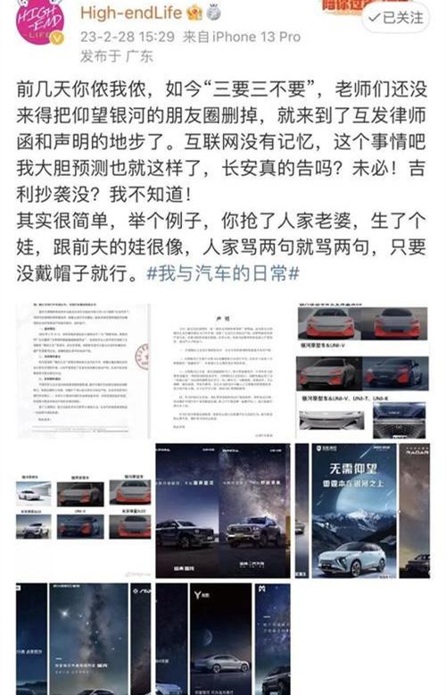 吉利汽車于2月23日推出了全新的新能源高端系列汽車吉利銀河。長(zhǎng)安汽車于2月28日對(duì)吉利汽車發(fā)送律師函,稱吉利銀河的銀河之光原車型涉嫌抄襲長(zhǎng)安汽車已發(fā)布的車型,侵犯了長(zhǎng)安汽車的知識(shí)產(chǎn)權(quán)。
