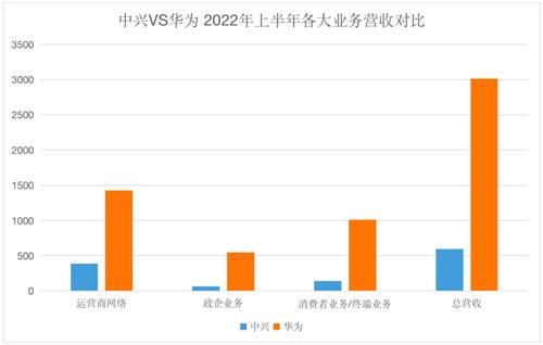 雖然崛起時間比較早,中興在通訊領域的市場統治力還是不如華為,目前中興的主要經營領域為運營商網絡、消費者業務和政企業務,貢獻收入最高的是運營商網絡,達到65%,而2022年華為產業的大幅度增長也給中興的轉身帶來了困難,整年中興在政企收入的占比只有11.9%,而華為達到了18%,且在2022年上半年的收入規模就達到了547億元,另外兩項業務上的收入華為也實現了全面碾壓,未來中興將面對更多的市場挑戰,如何在激烈的環境中生存下來并保持長足的發展,是一個艱難的問題。