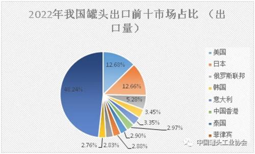 中國(guó)罐頭工業(yè)協(xié)會(huì)所統(tǒng)計(jì)的數(shù)據(jù),2022年間罐頭出口總量達(dá)到了312.5萬(wàn)噸,出口額度為68.9億美元,同比增長(zhǎng)為12%和22%,按照市場(chǎng)來(lái)看,中國(guó)罐頭主要出口的前,十大市場(chǎng)的出口量除了加納,日本以及韓國(guó)之外,和。2021年同期數(shù)據(jù)相比都有所增長(zhǎng),多少市場(chǎng)總增幅的額度超過(guò)了20%。