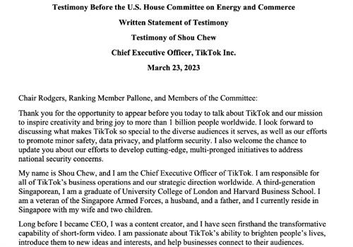 Tik tok或許會面臨被禁的危機,3月23日字節(jié)跳動海外短視頻平臺CEO周受資,參加了名為tik tok:國會如何保護美國數(shù)據(jù)隱私,保護兒童免受網(wǎng)絡(luò)傷害的聽證會。在此項會議中,眾位議員對該短視頻程序贊美應(yīng)該禁止的多項問題發(fā)表了言論,認為tik tok這個應(yīng)用程序?qū)γ绹膰野踩菢?gòu)成了一些潛在的威脅性。