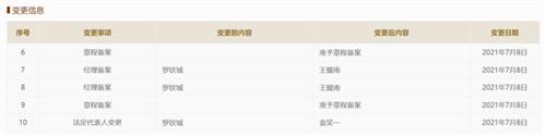 萬聯(lián)證券在2021年的7月8日,作出了法定代表人的變更,并進(jìn)行了經(jīng)理備案,原來法定代表人的羅傾城變更成為袁笑一,作為經(jīng)理的羅欽城更便成為了王耀南。