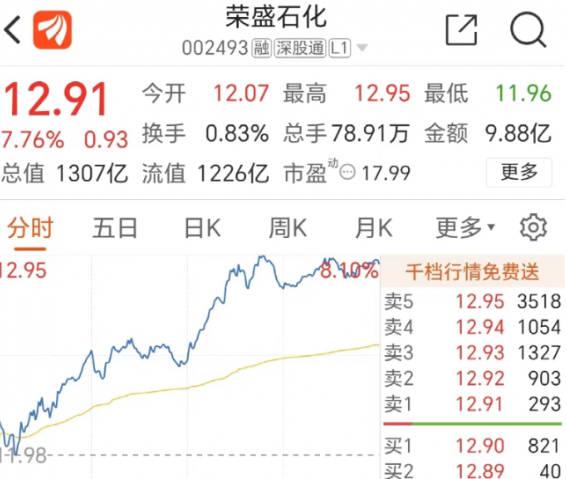 轉讓股權完成之后,沙特阿美子公司AOC將會持有榮盛石化10%的股權,還會加一股股份。融資之后,3月27號榮盛石化的股票大漲7.76%,在3月27號當天榮盛石化的股價以12.91元的價格收盤,總市值達到了1307億元。