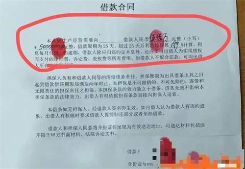 按照合同的照片當中可以看到總借款的金額是500萬元,借款人周期是25天,超過借款25天之后,每月利息是1.9%,而借款合同上出借人的姓名是并沒有公布的。按照每月利息為1.99%進行計算時,最終年利息則是23.88%,根據爆料的信息來看這一份合同大概出具的年份可能在2019年。