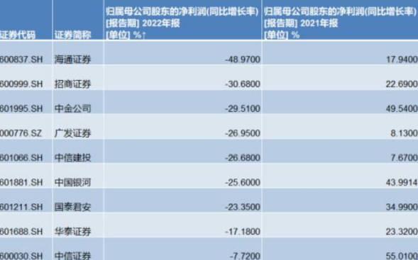 新年度四月初,隨著國內各大券商2022年年報的披露,龍頭券商的去年營業情況也基本正式公布,根據相關數據展示,截止到4月6日的數據,各大券商的歸母凈利潤指標當中2021年盈利排名靠前的十家上市券商,有九家已經披露了年報數據,中信證券仍舊領跑證券行業,華泰證券和招商證券分別名列第四名和第十名,海通證券分別從原先的第二名降至第七名。