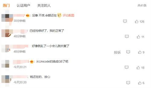 4月7日晚間有不少用戶表示自己的支付寶余額變成一團(tuán)亂碼,支付寶客服表示已經(jīng)發(fā)現(xiàn)了系統(tǒng)當(dāng)中的這個(gè)問(wèn)題,并且反饋給內(nèi)部有關(guān)部門(mén)的同事,正在加緊修復(fù)過(guò)程當(dāng)中,還表示這項(xiàng)錯(cuò)誤不會(huì)導(dǎo)致用戶的資金安全受到影響,相應(yīng)的理財(cái)產(chǎn)品收益也能正常獲得,在當(dāng)天21時(shí)10分,螞蟻對(duì)此做出了回復(fù),表示現(xiàn)在相關(guān)錯(cuò)誤已經(jīng)修復(fù),還有網(wǎng)友觀察到雖然當(dāng)時(shí)數(shù)值顯示錯(cuò)誤,卻并不影響正常使用,在修復(fù)之后自己的余額也沒(méi)有受到任何影響,這也是讓很多人感到安心的地方,這種快速修復(fù)錯(cuò)誤的行為也讓支付寶再一次獲得了用戶的信賴(lài)。