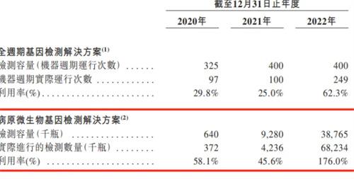 在剛開始核酸檢測的需求逐漸增加時,海普洛斯也在瘋狂的購買新的設備,為了能夠進一步的滿足檢測需求而檢測設備,也需要不斷的進行運行利用率,已經達到了176%。甚至在招標的過程當中也要求機器每日運作,要達到8個小時,全年無休。不過從相關的數據可以了解到,隨著檢測數量的不斷增加,海普洛斯在核酸檢測上所獲得的毛利率卻越來越低,近三年毛利率從60%逐漸降到了33%,而2023年的前兩個月需求和去年同期相比較下降7成。