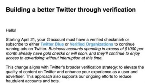 Twitter也給所有的合作伙伴都發送了電子郵件,在郵件中表示集團所作出的這一項調整是符合Twitter在之后更廣泛的驗證策略,能夠進一步的提升Twitter內容質量,可以增強用戶或者廣告商的廣告體驗,減少欺詐性的賬戶或者是僵尸賬戶。