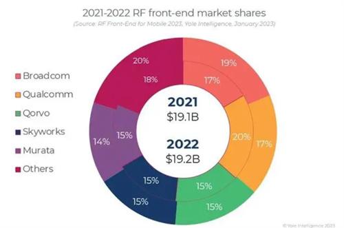 在這個領域中美系和日系廠商是占據了主導的地位,根據相關統計數據來看,思佳訊,村田,高通,威訊聯合半導體和博通這些企業的產品,在2021年和2022年的期間,占據了全球市場的80%以上的份額,對于國內的企業,只能夠去瓜分僅剩下的20%市場份額,業內人士對此表示,該領域美國公司在吃肉,臺積電在喝湯,至于中國大陸的公司連骨頭都啃不到。