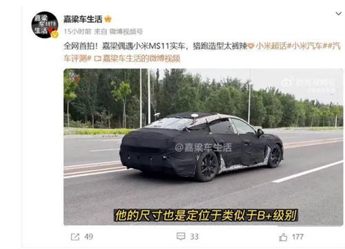 6月1日,知名汽車博主嘉梁車生活聲稱自己拍到了小米首款汽車的高清視頻,從這位博主上傳的視頻中可以看到,小米首款自研汽車MS11外表包裹著了大面積的偽裝,該博主之所以認(rèn)為這輛車是小米汽車,是因?yàn)樵诳拷^察之后,發(fā)現(xiàn)這輛汽車的三角形大燈輪廓與當(dāng)初小米汽車的假想圖基本上是保持一致。