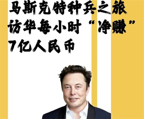 6月1日,馬斯克的私人飛機(jī)從上海虹橋機(jī)場(chǎng)起飛前往美國(guó)德克薩斯州的國(guó)際機(jī)場(chǎng),結(jié)束了此次訪問中國(guó)之旅,馬斯克的此次中國(guó)訪問時(shí)長(zhǎng)總共達(dá)到了44小時(shí)。這一次的訪問,讓特斯拉的股價(jià)整體上漲了2400多億,如果將這些市值換算的訪問時(shí)長(zhǎng)上來看,馬斯克在中國(guó)平均每小時(shí)能夠給公司創(chuàng)造54億人民幣左右的價(jià)值,按照馬斯克在公司內(nèi)部的持股比例來算,他本人每小時(shí)能夠創(chuàng)造七億人民幣的價(jià)值。