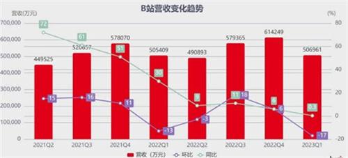 6月1日晚,B站公布了2023年度第一季度的財務報告,該報告中顯示,B站第一季度營收為50.69億元,同比增長了0.3個百分點,凈虧損為6.296億元。這項數值同比減虧了百分之72,能夠達到這個業績,完全是依靠B站勒緊褲腰帶省出來的金錢,在這個季度,B站的營業成本只有40億元,相較于往常時期減少了6.6%,總支出為25億元,下降了約11%的額度,比2022年的同時期,在支出方面節省了3.74億元。
