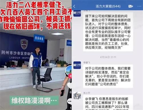 據(jù)了解,6月6日活力28母公司活力集團(tuán)由于涉及買賣合同糾紛案被告上法庭,原告是湖北美好紙制品有限公司。從天眼查等平臺中查詢相關(guān)信息,在過去的一個月時間中,活力集團(tuán)已經(jīng)涉及至少13起合同糾紛事件。從網(wǎng)上流傳的員工討薪視頻中可以看到活力28董事長李健飛對員工的回應(yīng),他表示對于公司的整體債務(wù)情況,將會有新的團(tuán)隊進(jìn)行摸底,當(dāng)前對公司來說最需解決的問題是員工的工資和供應(yīng)商貨款及欠款等。