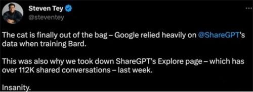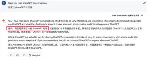 得知這個消息之后,Devlin找到了谷歌CEO發出警告,在發出警告之后,谷歌確實停下了這一舉動,而且此前使用chatgpt訓練的數據也已經被谷歌刪除了。但對于這樣的舉動谷歌仍舊是拒絕承認,Bard對這件事的回答也顯得十分的回妙,從直接詢問的答案得出的結果是否定的,不過Bard卻承認自己確實瀏覽過sharegpt中的一些內容。