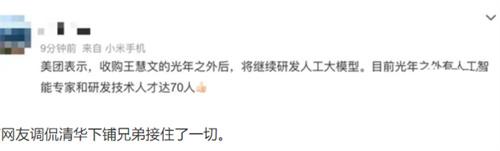 知情人士表示,目前光年之外的團隊規(guī)模大約在70人左右,此次美團的收購案行動,被很多網友認為是一場救火行動,還有網友調侃稱,王興在為自己的清華上鋪兄弟接盤。美團方面對此表示,此次并購完成之后,將會支持過年之外團隊繼續(xù)展開大模型領域的相關研究和探索,并且在文案中稱光年之外是中國領先的agi創(chuàng)新者。