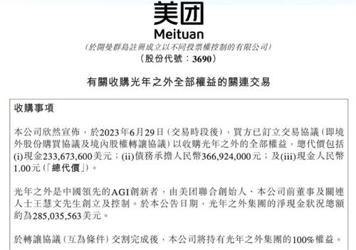 近日,王慧文疑似身患憂郁癥離崗多日,在他意外離崗后的一周后,6月29日晚,王興領導的美團集團開出了一張約20.65億元支票。全資收購王慧文創立的光年之外,王興的這次舉動不僅幫助王慧文解決燃眉之急,讓后者可以安心的養病,也讓眾多因王慧文聚集到光年之外的投資人得到一個平穩離場的機會。在美團這次全資收購光年之外后,原先進場的A股股東已經全部平價退出。