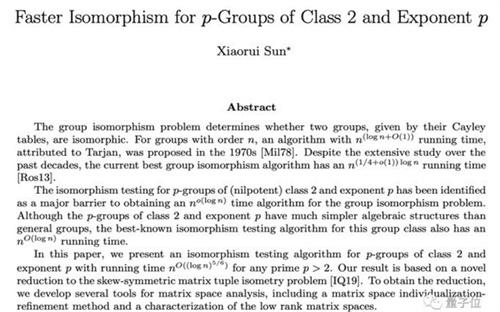 這位華人科學家所提出的構思,主要是將群轉換成了矩陣,將群同構的問題轉化成矩陣是否是相似的問題,在這個問題中,處理的矩陣具有一些特殊性質,任意兩個矩陣組合就會演變成另外一個矩陣,這樣一來,就會將問題轉化成判斷兩個矩陣空間是否等距的問題,在這個問題探討的過程中,還引入了一些獨創性的內容,從而提高了所有群同構算法的加速可能。