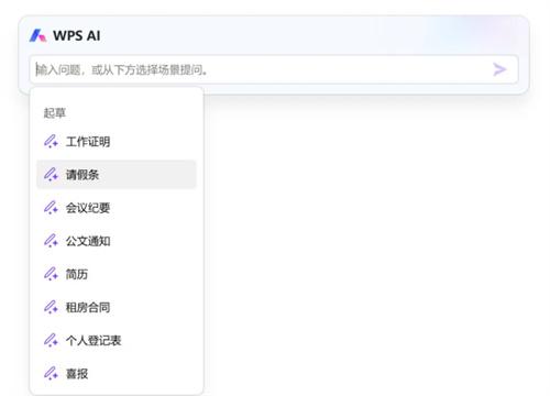 據獲得WPS AI版本的內測人士表示,在軟件的編輯頁面,輸入AI+回車鍵就能直接召喚WPS AI助手,這種AI大模型的表現方式,與其他的大模型有些區別。他就是一個模塊化的生成工具,與以前的請假條,會議記錄和工作證明相似,能夠生成一些換湯不換藥的文稿,比如此前想慕出一些好的請假內容,現在只需要隨便編個理由和日期就能自動生成。