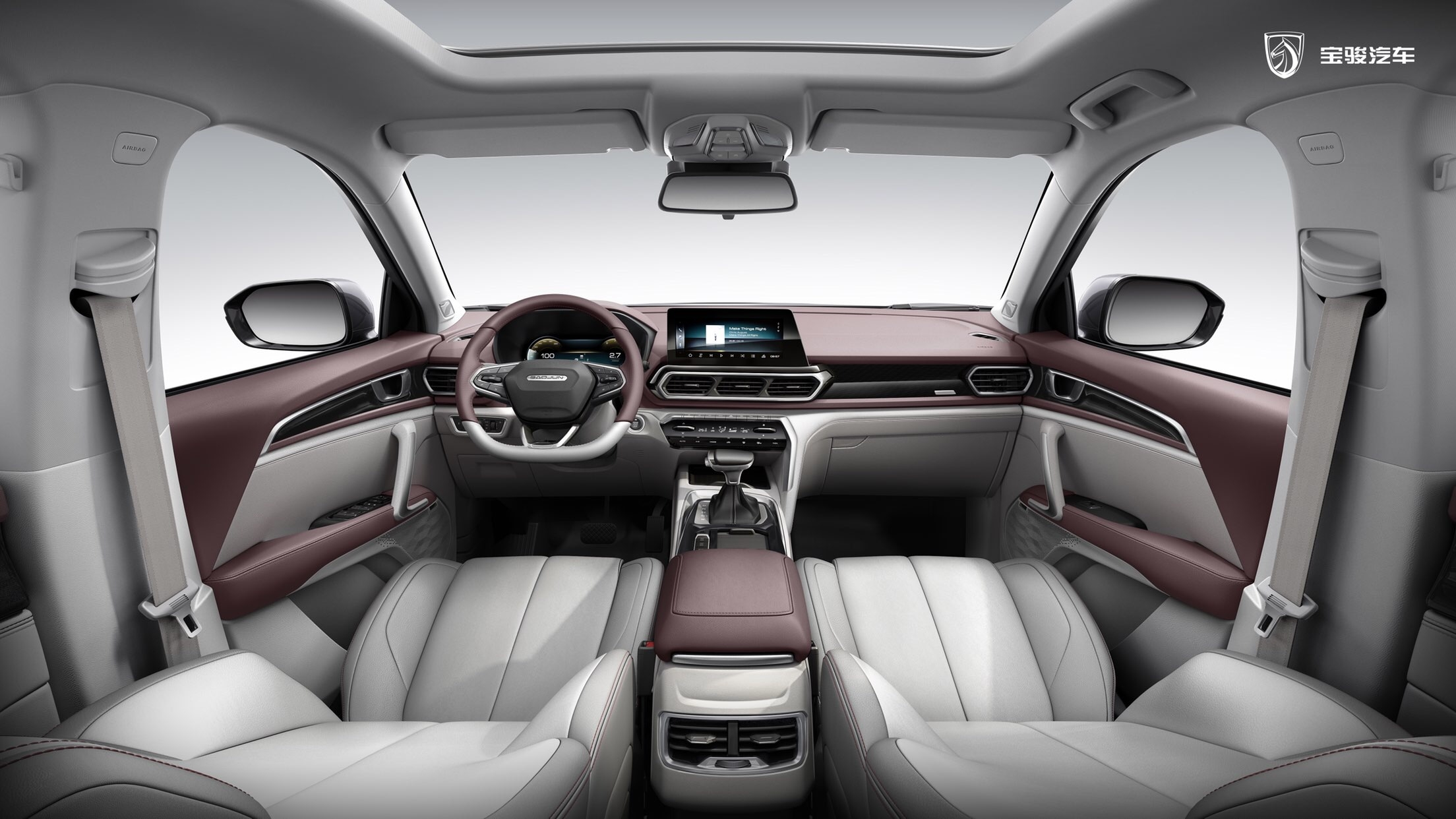 內飾方面,新車采納向駕駛者傾斜的環保式座艙設計,大量運用六邊形元素,塑造出很強的線條感。配備三輻式平底方向盤,中央帶有“BaoJun”字母元素,全液晶儀表盤、大尺寸懸浮式中控屏幕、以及下方的液晶空調顯示面板形成三屏聯動,整個中控臺采納分體式設計,增加層次感。
