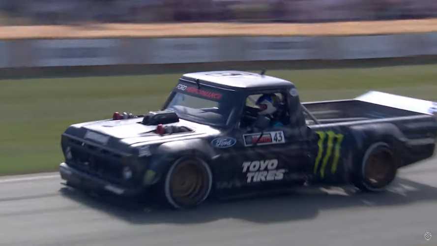 正如你現在可能已經猜到的那樣,Block回歸古德伍德的所有內容都具有上述特征。在積極的開始和驚人的第一階段之后,我們從福特GT驅動的皮卡上稍微漂移,然后在人群的展示中心進行全輪驅動甜甜圈的適當旋轉循環。從那里開始,Block出人意料地落后于商業,將經典的F-150放慢速度,然后放慢速度以防止左前擋泥板脫落。我們不知道是什么原因導致它松動,但他也可能將腳踩在瘦小的踏板上,因為無論如何擋泥板在隧道之間掉落。