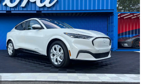 Mach-E 的外部采用 Star White Metallic Tri-Coat 飾面,內部為灰色,獨特的 19 英寸鋁制車輪帶有白色口袋。轎跑車的飾面是福特經典的牛津白,搭配19英寸白色輪轂和黑白兩色內飾。兩者都有白色徽章。