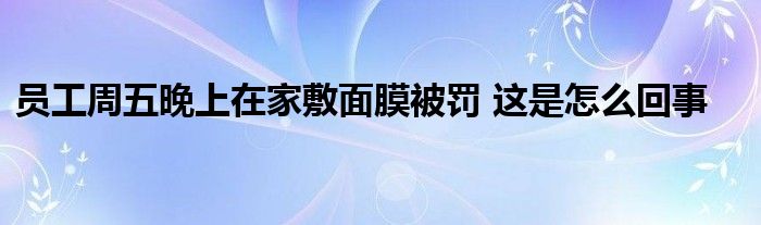 最近小編發(fā)現(xiàn)有諸多的小伙伴們對于員工周五晚上在家敷面膜被罰 這是怎么回事這個問題都頗為感興趣的,大家也都想要及時了解到員工周五晚上在家敷面膜被罰 這是怎么回事相關信息,那么小編今天就來為大家梳理下具體的關于這個問題的一些消息吧。