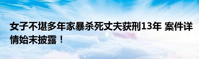 女子不堪多年家暴殺死丈夫獲刑13年