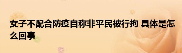 最近小編發現有諸多的小伙伴們對于女子不配合防疫自稱非平民被行拘 具體是怎么回事這個問題都頗為感興趣的,大家也都想要及時了解到女子不配合防疫自稱非平民被行拘 具體是怎么回事相關信息,那么小編今天就來為大家梳理下具體的關于這個問題的一些消息吧。
