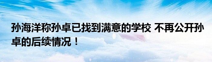 最近小編發現有諸多的小伙伴們對于孫海洋稱孫卓已找到滿意的學校 不再公開孫卓的后續情況!這個問題都頗為感興趣的,大家也都想要及時了解到孫海洋稱孫卓已找到滿意的學校 不再公開孫卓的后續情況!相關信息,那么小編今天就來為大家梳理下具體的關于這個問題的一些消息吧。