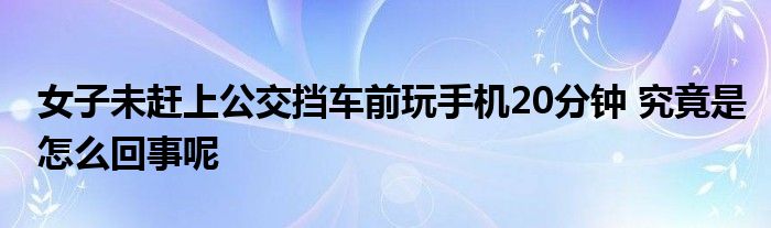 最近小編發現有諸多的小伙伴們對于女子未趕上公交擋車前玩手機20分鐘 究竟是怎么回事呢這個問題都頗為感興趣的,大家也都想要及時了解到女子未趕上公交擋車前玩手機20分鐘 究竟是怎么回事呢相關信息,那么小編今天就來為大家梳理下具體的關于這個問題的一些消息吧。