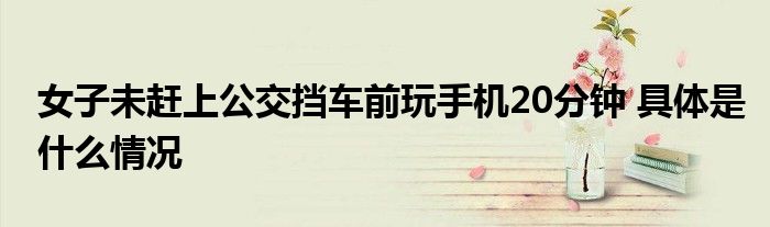 最近小編發(fā)現(xiàn)有諸多的小伙伴們對于女子未趕上公交擋車前玩手機20分鐘 具體是什么情況這個問題都頗為感興趣的,大家也都想要及時了解到女子未趕上公交擋車前玩手機20分鐘 具體是什么情況相關(guān)信息,那么小編今天就來為大家梳理下具體的關(guān)于這個問題的一些消息吧。