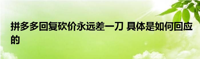 【拼多多回復砍價永遠差一刀】1月14日,“拼多多砍價,但始終差0.9%”,這一話題再次登上熱搜。據悉,去年3月,上海律師劉宇航當時參加了拼多多的“砍價免費拿”活動,領取了一張“超級免單卡”,但邀請多人砍價后,始終差“0.9%”??硟r頁面顯示的0.9%不是0.9%,而是0.9996427%。劉律師質疑,為何次次第一名卻總是無法砍價成功?