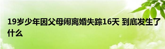 #19歲少年因父母鬧離婚失蹤16天#日前,一則“19歲少年因父母鬧離婚失蹤16天”新聞引發(fā)各界網(wǎng)民高度關(guān)注的焦點。據(jù)悉,父母鬧離婚怎么辦,現(xiàn)在的好多人追求感情的自由,不把家庭當(dāng)回事,其實他們不知道在他們鬧矛盾的時候最受傷害的其實是孩子。江蘇揚州19歲的小袁因父母吵架離家出走失聯(lián)16天。為阻止父母離婚,小袁曾多次以生命相威脅。