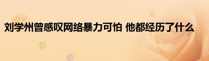【劉學州曾感嘆網絡暴力可怕】近期,一篇“劉學州曾感嘆網絡暴力可怕”的報道登上了各大搜索引擎的熱搜榜,在網上引起了眾多網民的關注和熱議,深港在線小編也第一時間在網上查閱整理了一些相關資訊,下面一起來看下。