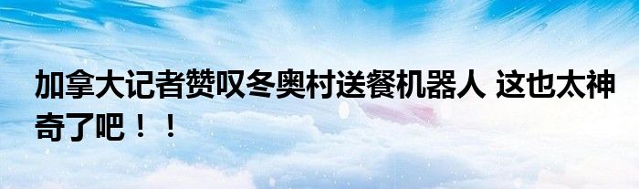 #加拿大記者贊嘆冬奧村送餐機器人#日前,一則“加拿大記者贊嘆冬奧村送餐機器人”新聞引發(fā)各界網(wǎng)民高度關(guān)注的焦點。據(jù)悉,北京冬奧會三個賽區(qū)的冬奧村已經(jīng)于27日正式開村。隨著各國運動員的入住,冬奧村的不少“黑科技”引發(fā)各國熱議。