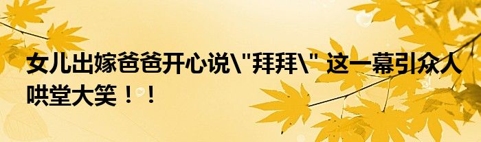 【女兒出嫁爸爸開心說"拜拜"】山東女兒出嫁,爸爸親自相送,隨口一句“拜拜”笑翻了圍觀的眾人。網友:說好的劇情為啥篡改。