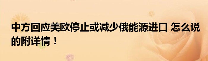 中方回應(yīng)美歐停止或減少俄能源進(jìn)口