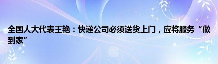 【建議快遞公司完善送貨上門】據(jù)中國(guó)新聞網(wǎng)微博3月8日消息,全國(guó)人大代表、天津公交集團(tuán)第三客運(yùn)有限公司8路公交隊(duì)司機(jī)王艷建議快遞公司改善送貨上門,“讓服務(wù)到家”。