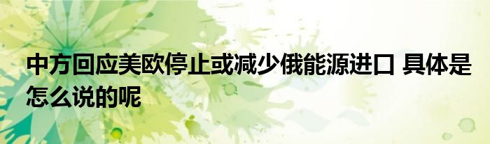 中方回應美歐停止或減少俄能源進口