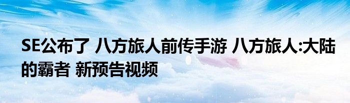 近日,SE公布了《八方旅人》前傳手游《八方旅人:大陸的霸者》新預告視頻,視頻中包含了一小段的游戲實機演示畫面,一起來看看吧!