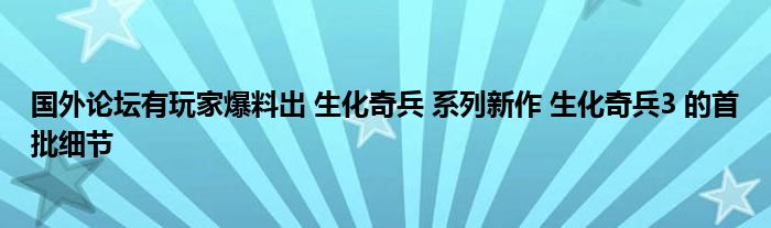 近日,國外論壇有玩家爆料出《生化奇兵》系列新作《生化奇兵3》的首批細節(jié),據(jù)介紹該作將于2021財年(2020年4月-2021年3月)發(fā)售。