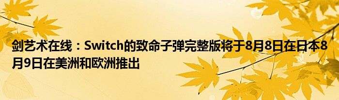 Bandai Namco宣布,刀鋒藝術在線:Fatal Bullet完整版將于8月8日在日本和8月9日在美洲和歐洲推出。