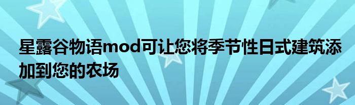 與Stardew Valley的新季節(jié)性日式建筑模型一起,實現(xiàn)您夢寐以求的(虛擬)卡哇伊生活。包含傳統(tǒng)的minka風(fēng)格的住宅和裝飾城鎮(zhèn)的功能,取代了香草版本,mod只是讓你的公寓可愛的東西。