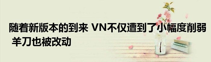 VN這個英雄如今在比賽中越來越難看到了,早在春節(jié)期間,VN還是當(dāng)時炙手可熱的英雄,基本上每局游戲都能遇到一個VN,在當(dāng)時新皮膚確實給了VN很高人氣,不過當(dāng)時的VN也確實強,開大后各種潛行各種秀,傷害爆炸。但是隨著新版本的到來,VN不僅遭到了小幅度削弱,羊刀的改動也相當(dāng)于變相削弱了VN,直接命中了VN的要害。因此新版本VN也將不再是神級英雄,她的位置必將被其他英雄取代。
