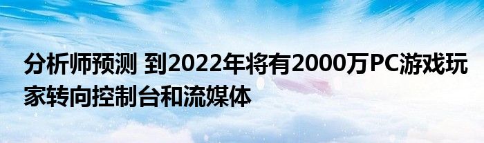 一家分析公司預測,未來幾年將有2000萬玩家從PC轉向控制臺和流媒體。擁有PC游戲市場專長的Jon Peddie Research認為游戲玩家將開始走向“電視游戲平臺”,其中包括游戲機,Apple TV和Google Stadia,從現在到2022年。