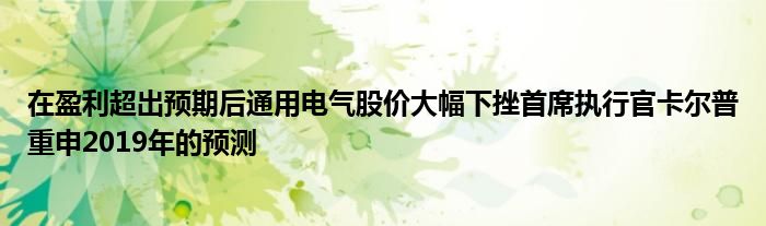 通用電氣將2019年稱為“重置年”,堅持其先前的預測。即使第一季度“比我們的期望更好”,首席執行官拉里·卡爾普在一份聲明中表示,這“主要是由某些項目的時間推動,這應該在一年中取得平衡。”