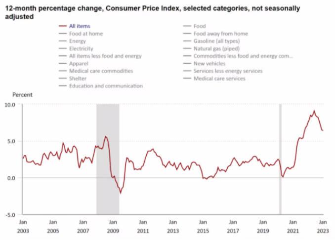 以此來對通貨膨脹率進一步的遏制,使其回到2%的正常水平,根據數據統計,美國的消費者價格指數在2022年的7月份就一度上漲,到了9.1%之后出現了緩慢的下降,到了2023年的1月份已經下降到6.4%的水平,2023年的1月份,美國的非農就業數據顯示美國的失業率已經降到了3.4%,這是1969年以來的最低水平。