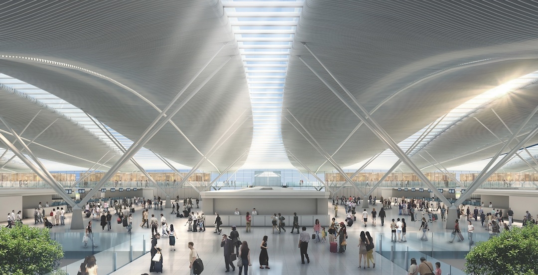 香港國際的一個新的280,000平方英尺的客運航站樓將提供57個停機位,每年可處理3000萬名乘客。AECOM是設計公司。AECOM